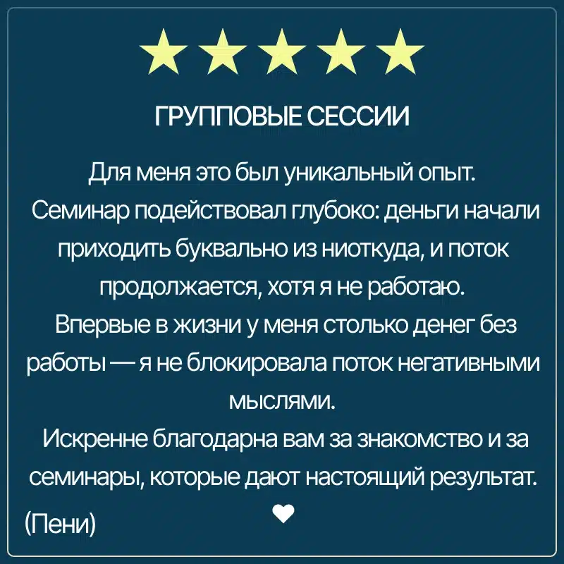 Мы создали результативный формат и разработали базовую технику для проработки любых травматических ситуаций, блоков и болезней без эмоциональных перегрузок,
